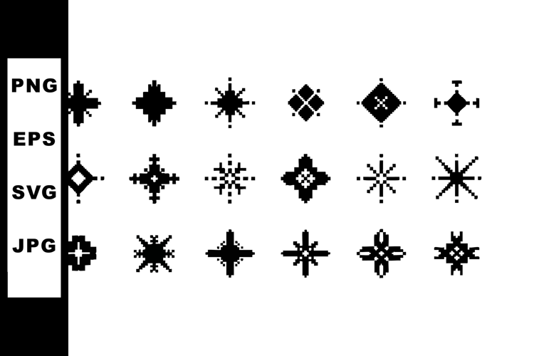 This vector file presents 18 unique pixel star icons featuring different sparkle shapes and shine effects, ideal for digital projects and creative design work, minimalist style.