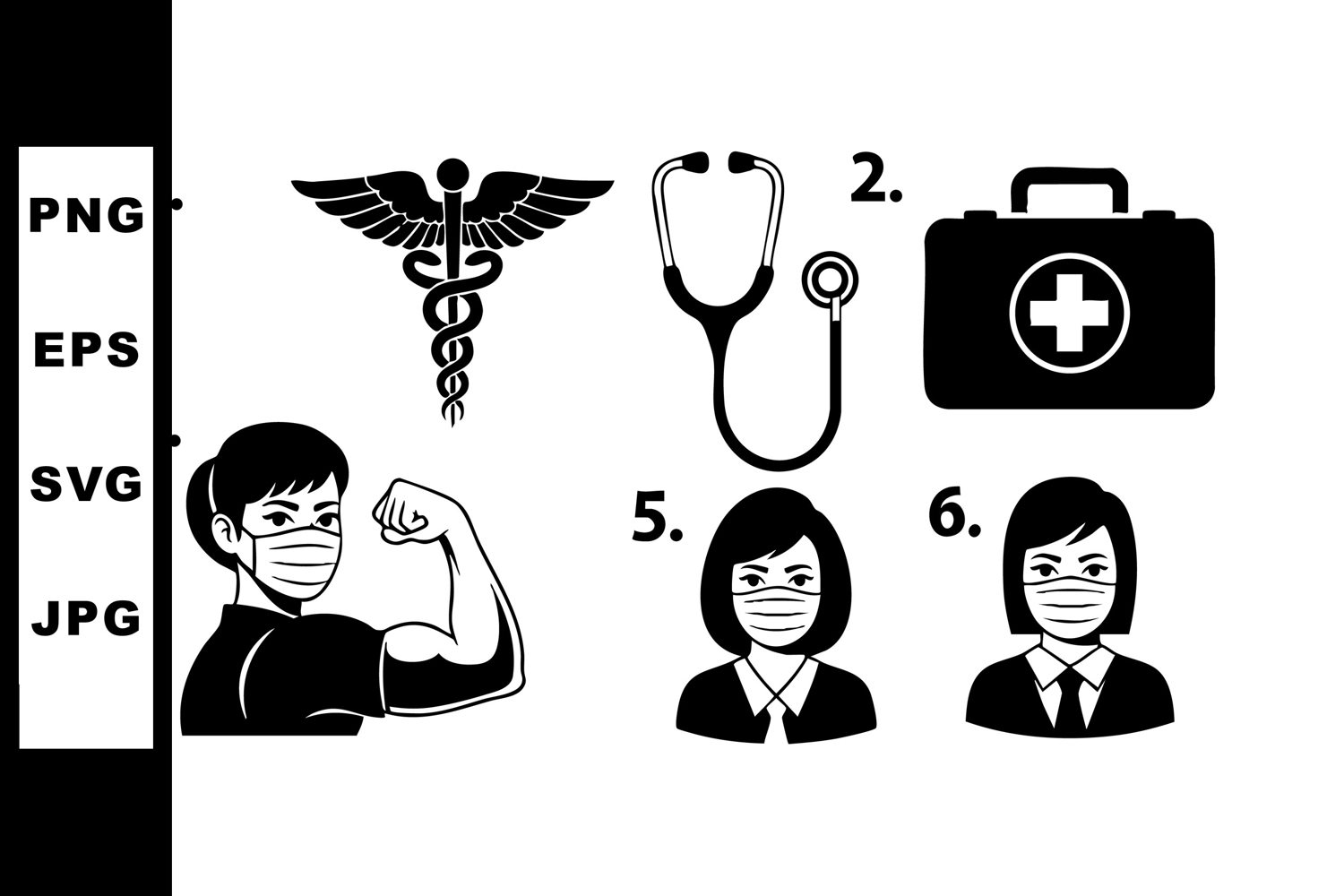 First Aid Kit Black White Icons Medical Healthcare Vector Healthcare Vector Icons Medical Vector Illustration Caduceus Medical Symbol Stethoscope Medical Icon Masked People Illustration Healthcare Protection Icon Medical Professional Graphic