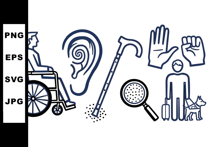 Sign Language Graphics Disability Awareness Icons Accessibility Vector Set Assistive Device Clipart Wheelchair Mobility Icons Service Dog Illustrations Hearing Impairment Symbols Inclusive Design Bundle Mobility Aid Clipart Disability Support Icons