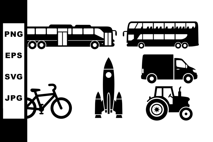 Vehicle Silhouette Set Transport Clipart Bundle Urban Transport Clipart Transportation Vehicle Clipart Bus Bicycle Rocket Road Vehicle Graphics Travel Vehicle Icons Vector Transportation Set Vehicle Design Collection Commercial Use Vehicles