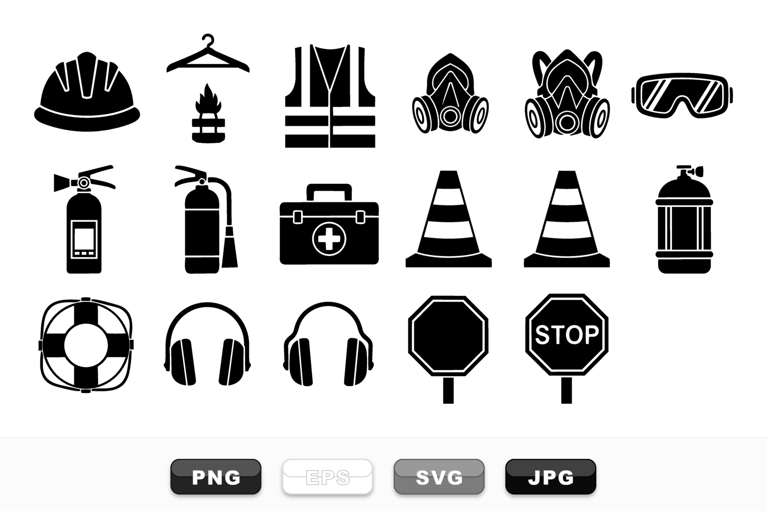 Emergency Response Set Workplace Safety Graphics First Aid Kit Icons Industrial Safety Icons Fire Safety Equipment Protective Gear Set Construction Safety Clipart Traffic Safety Signs Personal Protection Icons Safety Equipment Illustrations