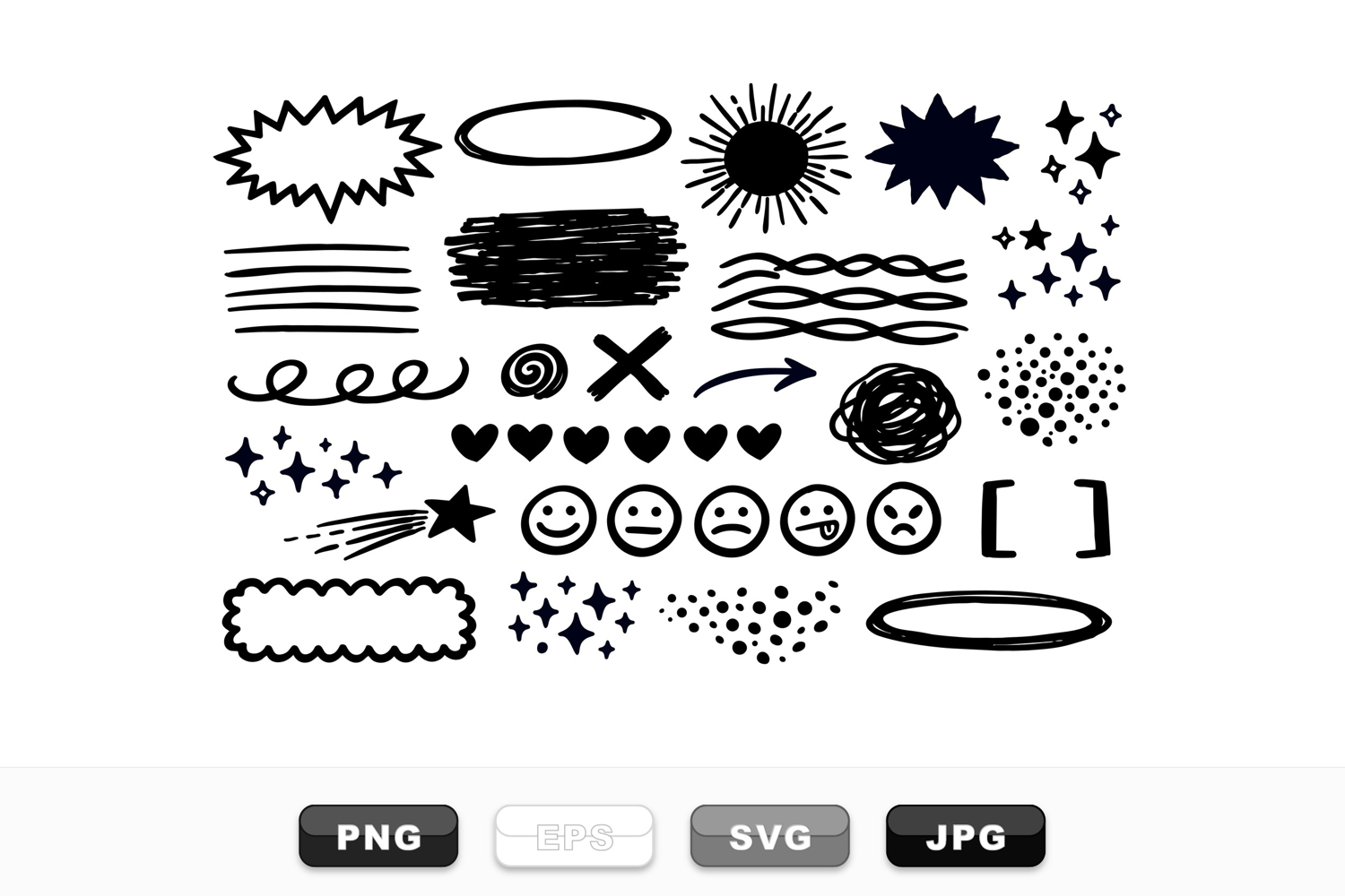 Hand Drawn Doodles Doodle Clipart Set Black Ink Icons Vector Scribble Pack Fun Emoji Graphics Sketch Style Set Arrow And Stars Heart Doodle Bundle Scribble Line Art Crafts Print Designs