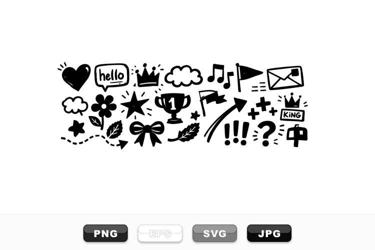 Hand Drawn Doodle Speech Bubble Clipart Black Line Art Music Note Icons Doodle Icon Set Sketch Clipart Bundle Cute Vector Icons Fun Digital Doodles Arrow And Flag Trophy And Crown