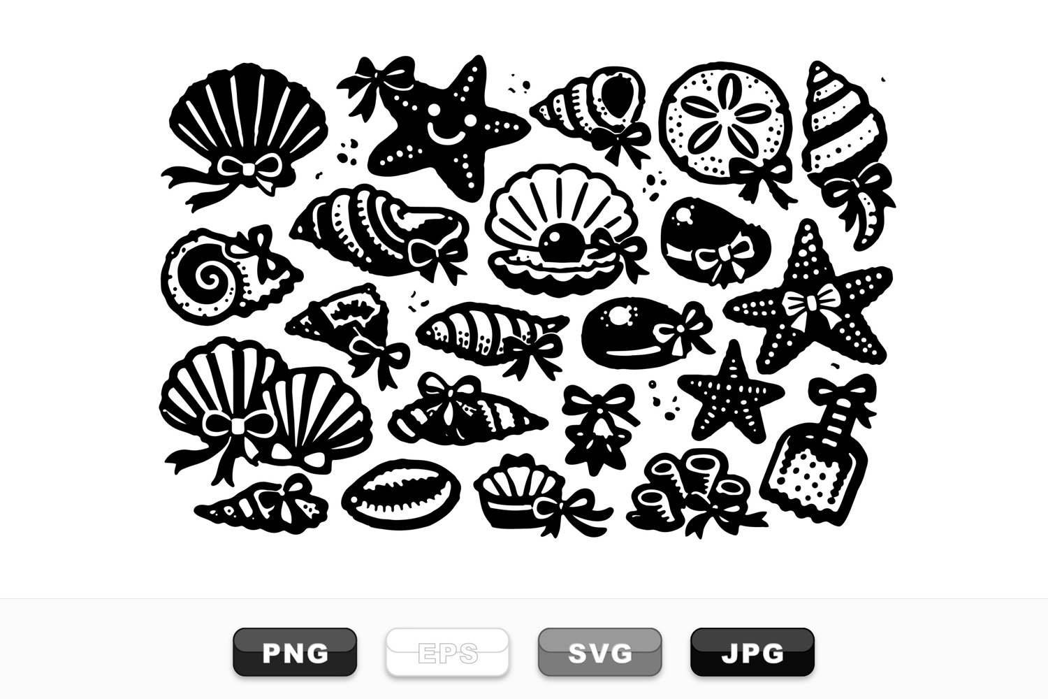 Black And White Vector Beach Themed Designs Seashell Vector Clipart Summer Shell Illustrations Marine Life Graphics Starfish Clipart Set Nautical Craft Bundle Ocean Inspired Clipart Shell Bow Decorations Coastal Scrapbooking Kit