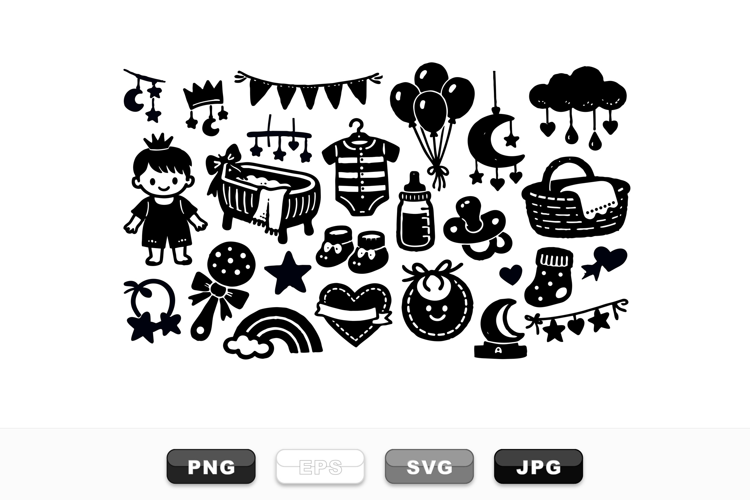 Cute Baby Svg Baby Shower Graphics Nursery Room Decor Baby Nursery Clipart Newborn Baby Bundle Baby Clothes Illustrations Children Clipart Pack Baby Accessory Set Infant Care Designs Toddler Design Elements