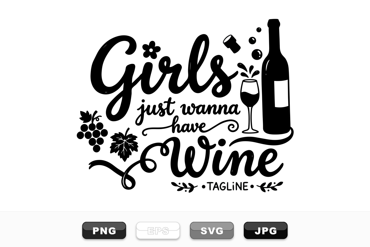 Funny Girls Just Wanna Have Wine SVG Bundle for Crafts example image 1