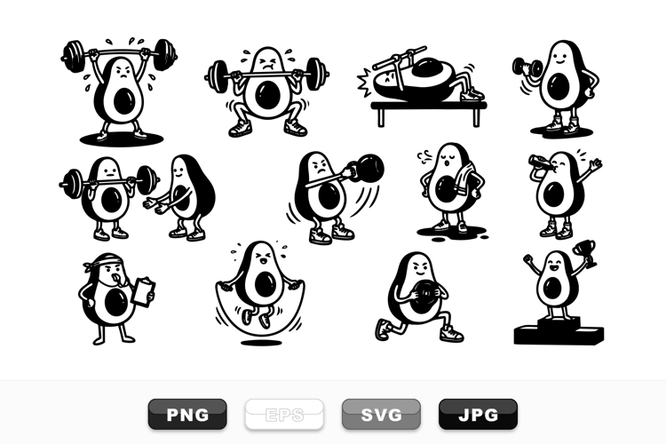 Cute Avocado Fitness Cartoon Clipart Set example image 1
