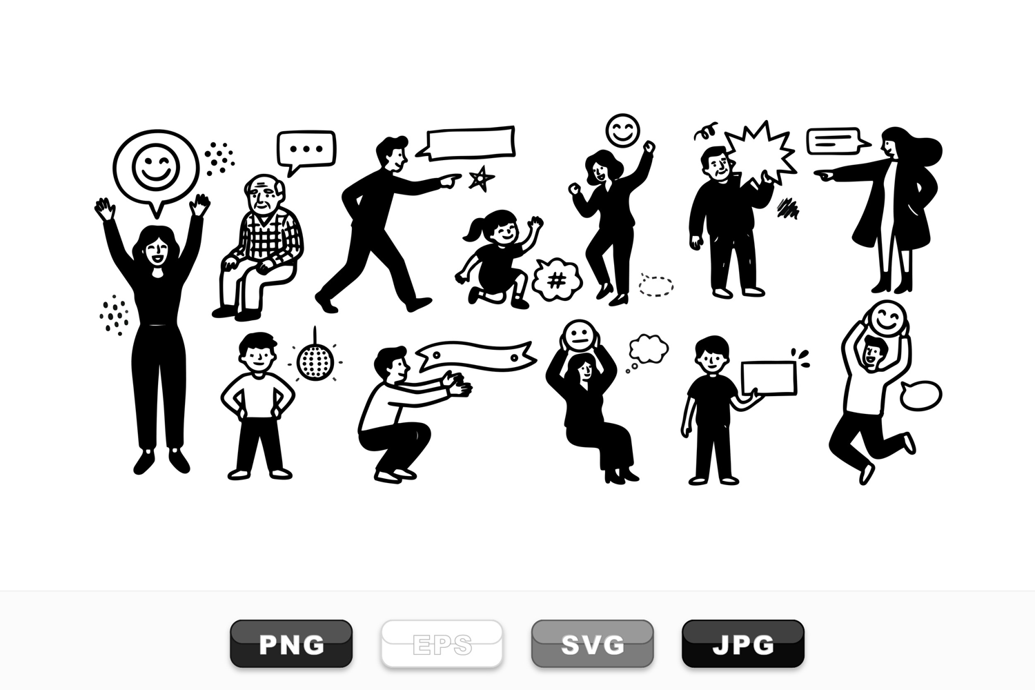 Happy People Clipart Communication Icon Set Expressive People Silhouettes Hand Drawn Character Set Gesture Clipart Bundle Family Figures Collection Conversation Silhouette Pack Social Interaction Graphics Animated Body Language Doodle Character Bundle