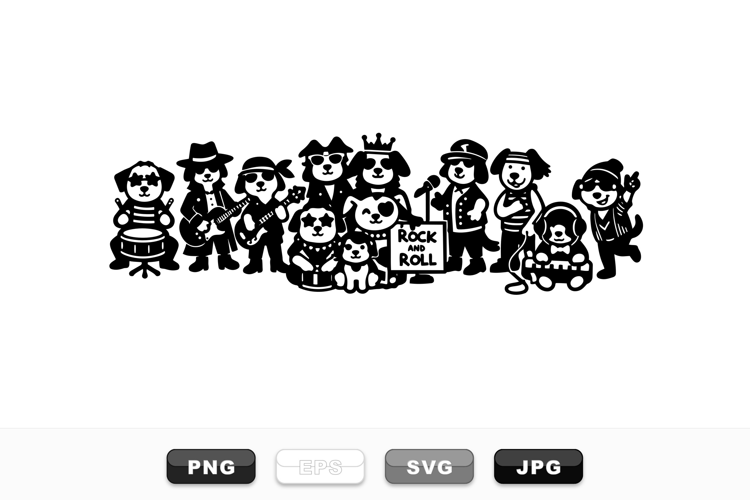 Similar Design Products to Cute Dog Rock Band Silhouette Clipart Bundle for Crafts