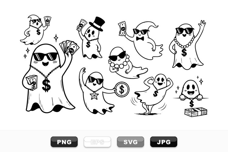 Halloween Clipart Set Funny Ghost Clipart Digital Clipart Pack Cute Ghost Illustrations Money Themed Design Cartoon Ghost Vector Cash Money Graphics Cool Ghost Characters Hand Drawn Ghost Art Party Ghost Collection