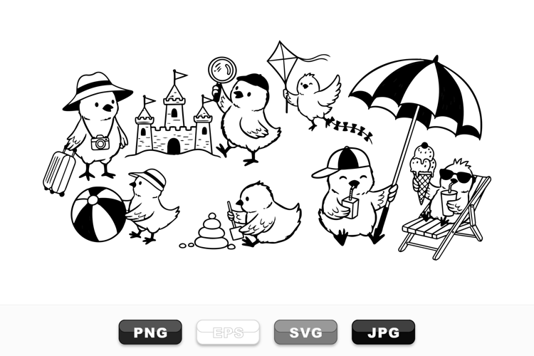 Summer Chick Vector Clipart Bundle for Kids Crafts