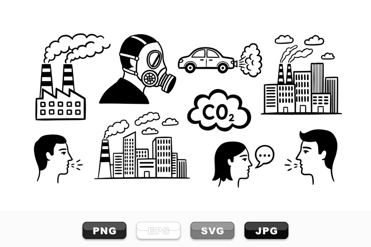 Industrial Pollution Clipart Environmental Awareness Graphics Air Quality Vector Set Toxic Gas Illustration Gas Mask Design Pack Car Exhaust Vector Co2 Emission Graphic Pollution Awareness Icons Urban Pollution Clipart Public Health Design