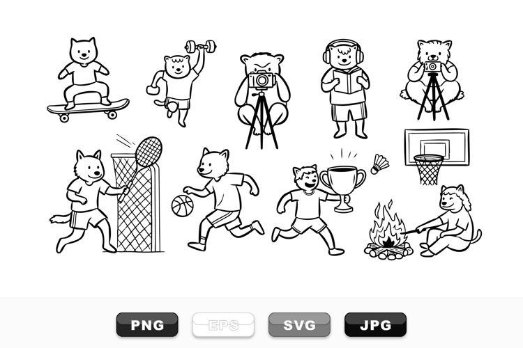 Hand Drawn Fox Sports Clipart Bundle Kids Activity Svg Camping Adventure Set Basketball Vector Pack Tennis Player Illustrations Skateboard Character Designs Photography Animal Graphics Printable Summer Activities Victory Trophy Clipart