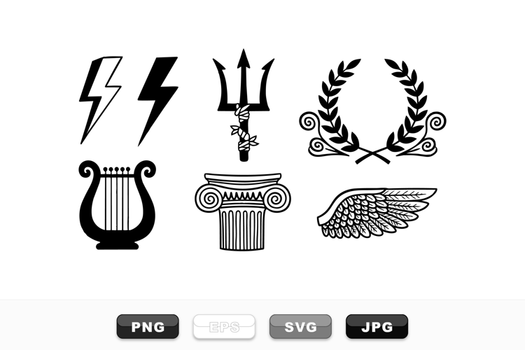 Ancient Greek Clipart Lightning Bolt Icons Mythology Symbol Set Greek Column Illustration Laurel Wreath Graphic Trident Vector Design Wing Silhouette Clipart Musical Lyre Images Classic Greek Bundle Historical Mythology Set
