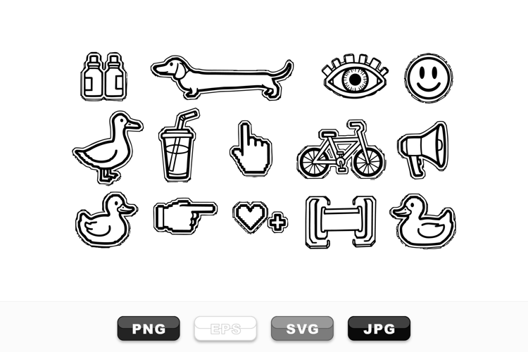Hand Drawn Outline Vector Sticker Pack Pixel Art Stickers Animal Clipart Collection Digital Icon Bundle Outline Sticker Set Retro Style Icons Monochrome Sticker Kit Funny Digital Icons Cartoon Vector Pack