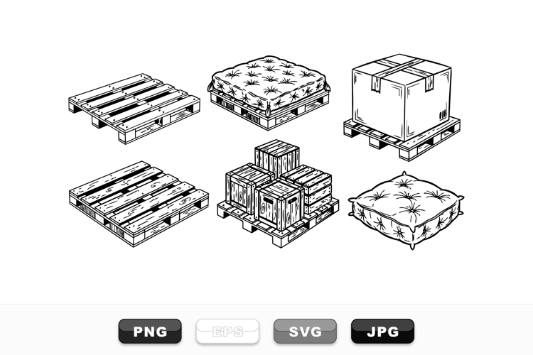 Wooden Crate Clipart Hand Drawn Pallet Pallet Cushion Vector Industrial Pallet Illustrations Vintage Crate Bundle Shipping Packaging Graphics Warehouse Pallet Set Pallet Furniture Design Rustic Packaging Clipart Svg Pallet Bundle