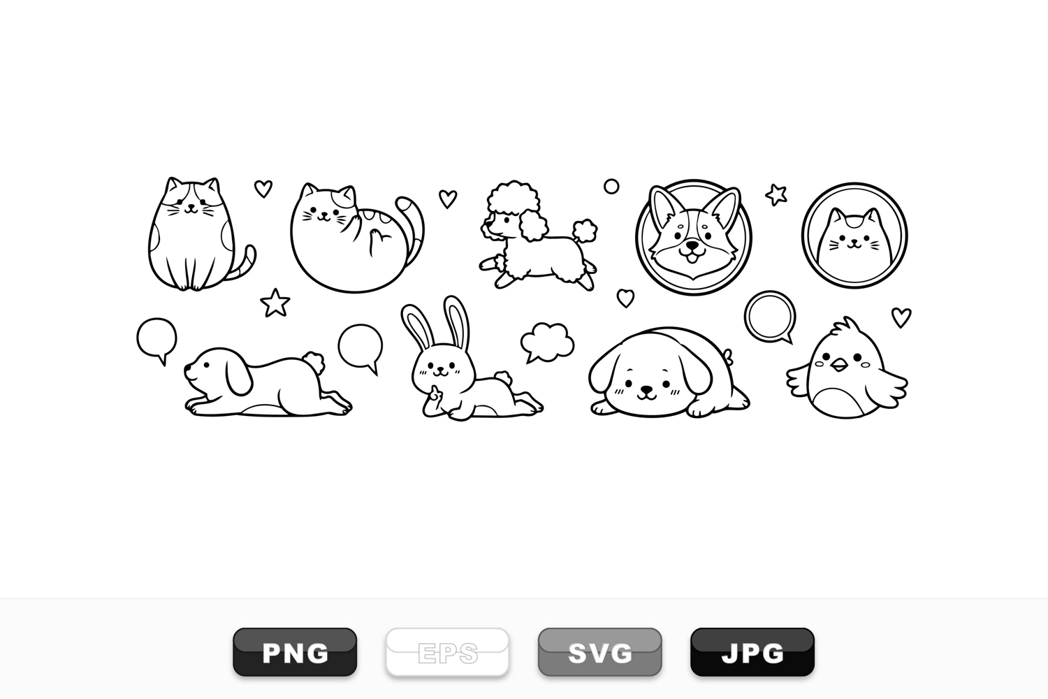 Printable Sticker Set Vector Animal Clipart Cute Animal Sticker Cute Pet Illustrations Kids Animal Design Line Art Sticker Animal Clipart Pack Playful Animal Set Pet Cartoon Bundle Black White Sticker
