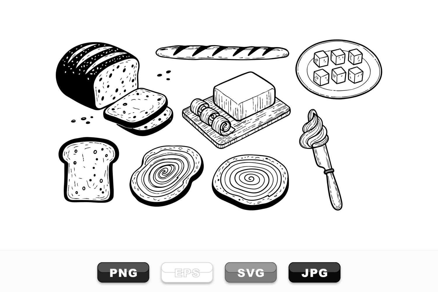 Hand Drawn Bread And Butter Clipart Set For Kitchen example image 1