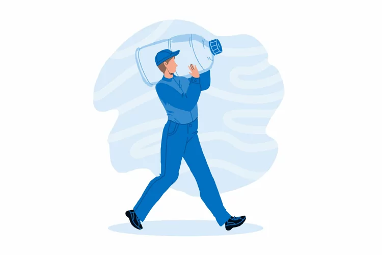 Water Delivery Service Worker Carry Bottle Vector