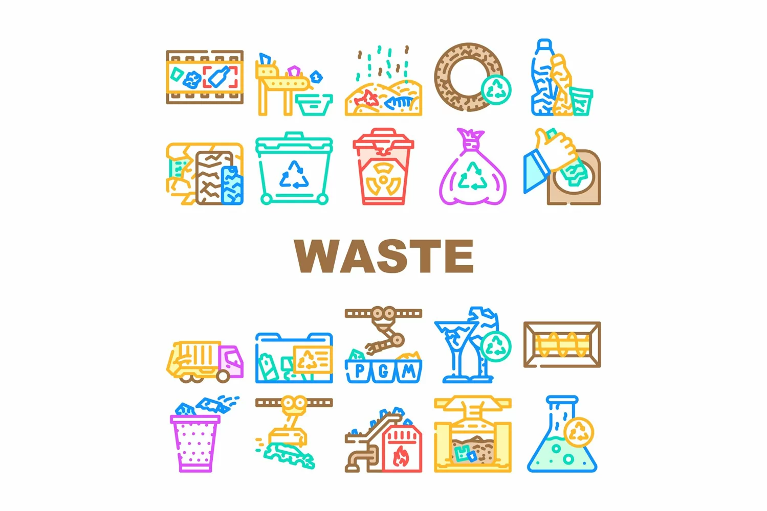 Vector Icons Set Equipment Chemical Conveyor Waste Technique Hazardous Sorting