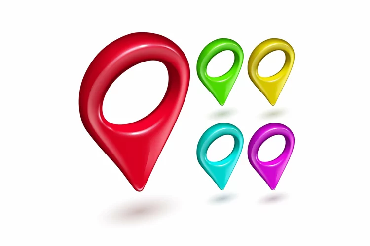 Gps Pointer Multicolor Navigate Locate Set Vector. Multicolored Gps Pointer Digital Map Pin, Mobile Phone Application Or Navigation Electronic Device Mark. Template Realistic 3d Illustrations. Formats: JPG, EPS