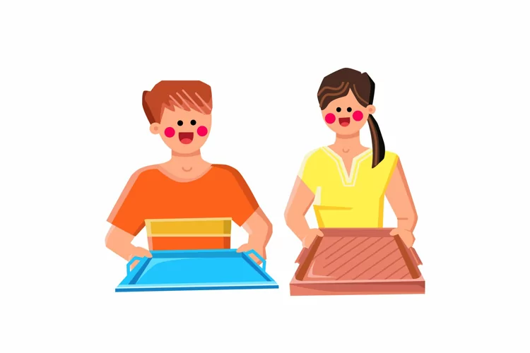tray man woman vector. food restaurant, hand plate, business waiter, caucasian female, service person, catering tray man woman character. people flat cartoon illustration. Formats: JPG, EPS