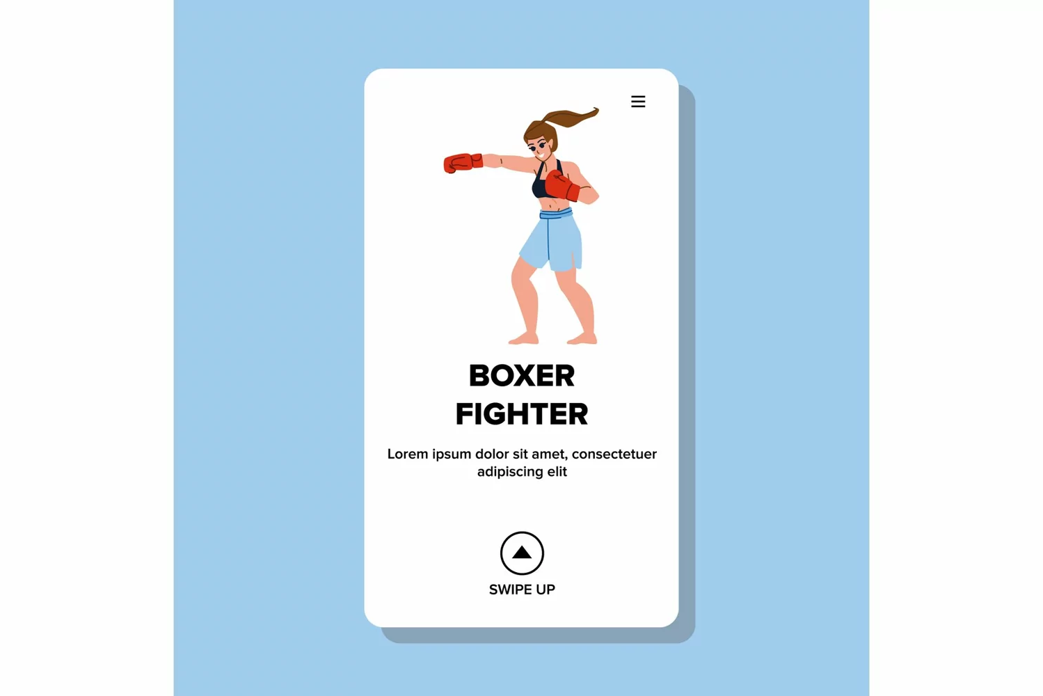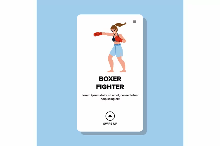 boxer fighter woman vector. female sport, fitness caucasian, girl power, woman strong, champion boxer fighter woman web flat cartoon illustration. Formats: JPG, EPS