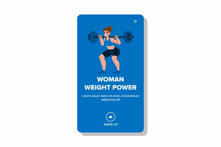woman weight power vector. workout fit, strong gym, fitness sportswear, training strength, muscular woman weight power web flat cartoon illustration