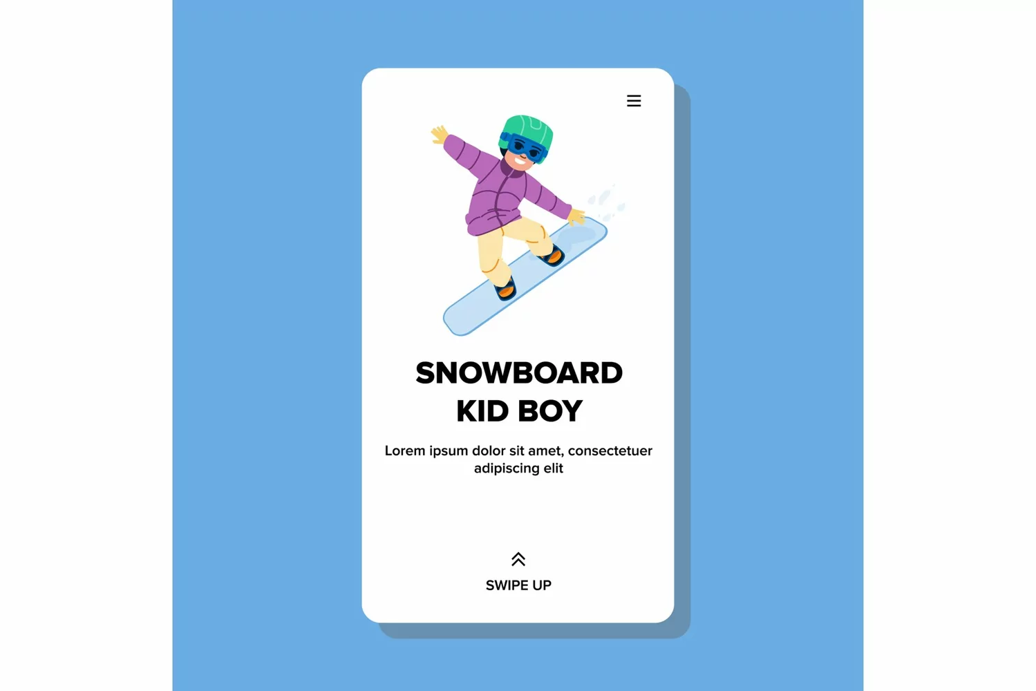 snowboard kid boy vector. ing child, winter sport, vacation happy, snow fun, holiday season snowboard kid boy web flat cartoon illustration