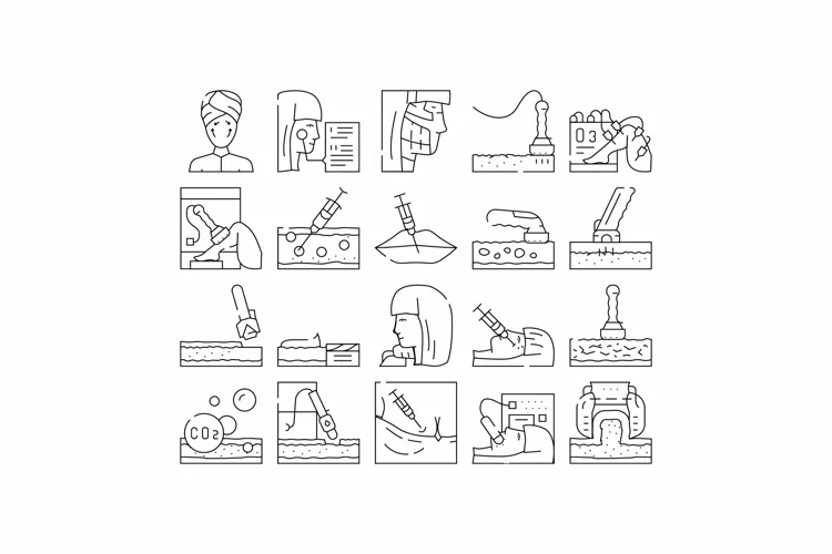 Vector Icons Set Face Cosmetology Complex Treatment Cleansing Procedure Mesotherapy