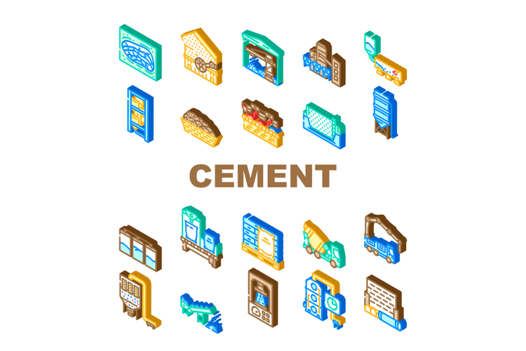 cement production clinker icons set vector