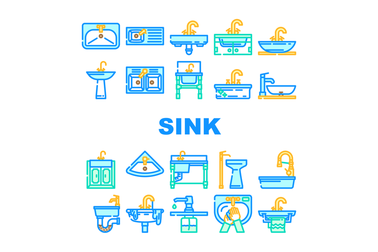 sink kitchen bathroom icons set vector