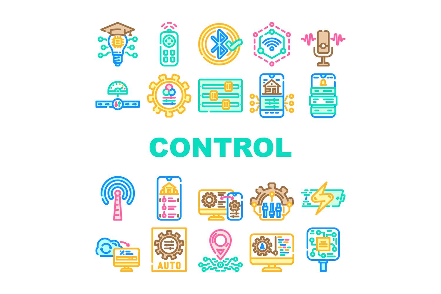 modern technology control product icons set vector