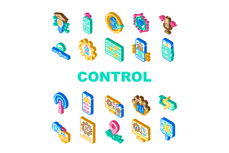 modern technology control product icons set vector