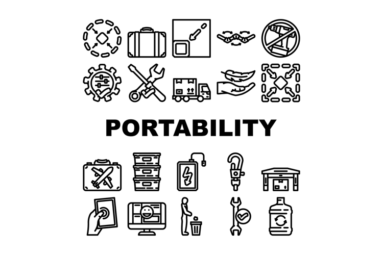portability convenience product icons set vector example image 1