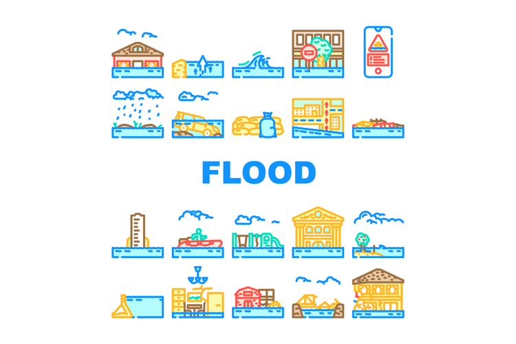 flood water disaster storm icons set vector example image 1