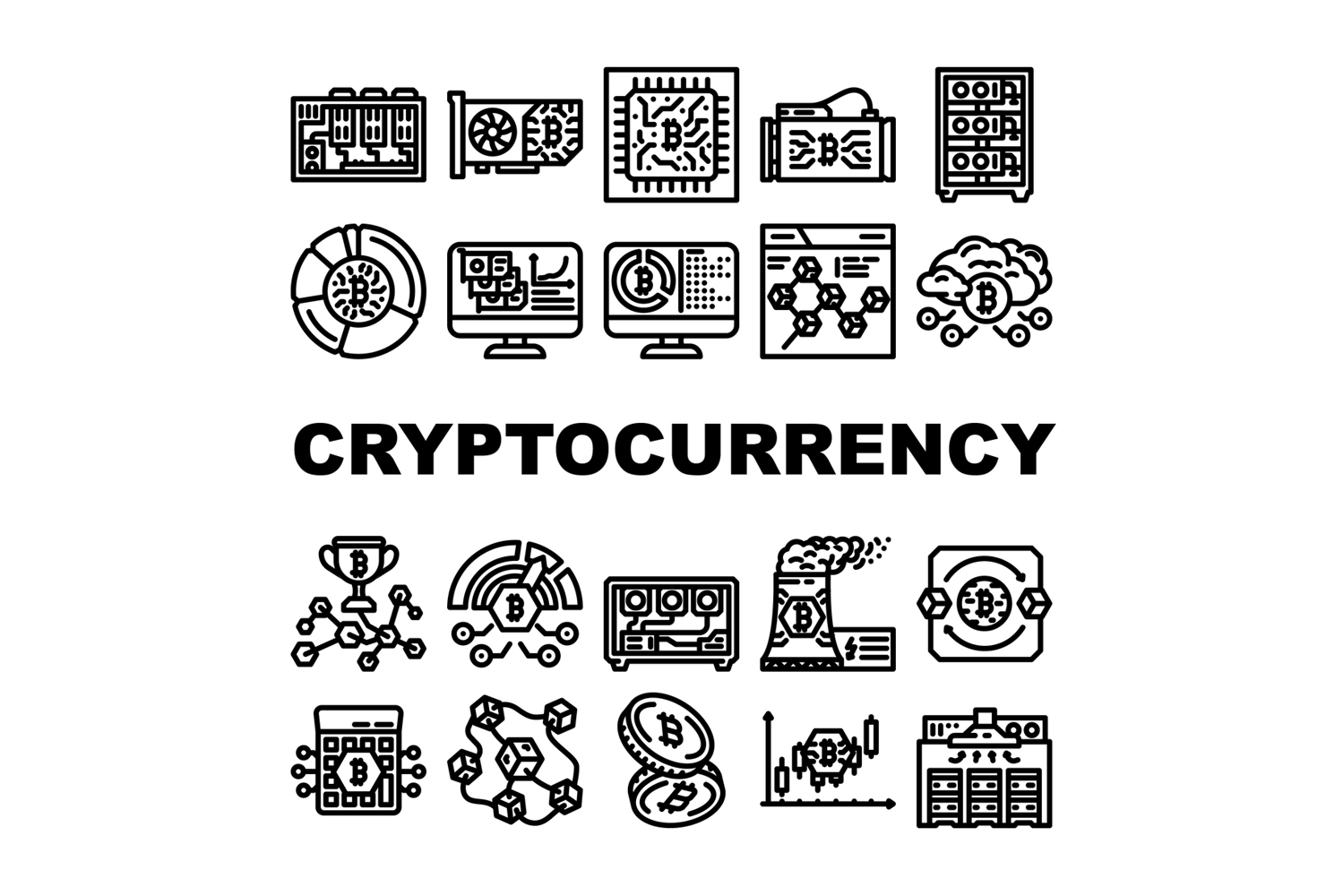 cryptocurrency mining wallet icons set vector example image 1
