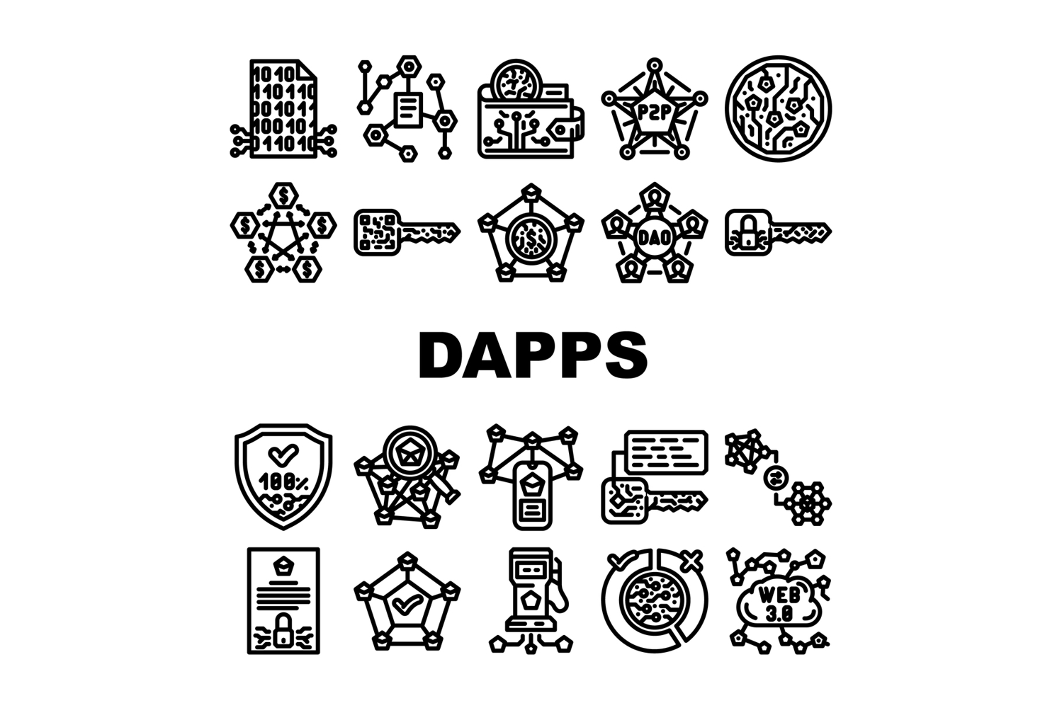 decentralized applications dapps icons set vector example image 1