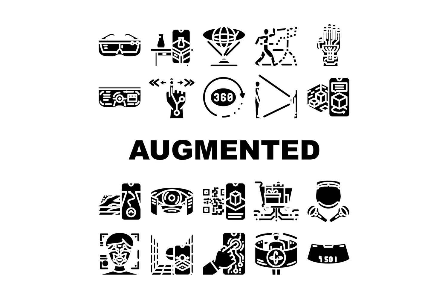 augmented reality virtual ar vr icons set vector. immersive technology, simulation interactive, experience digital, overlay augmented reality virtual ar vr glyph pictogram Illustrations