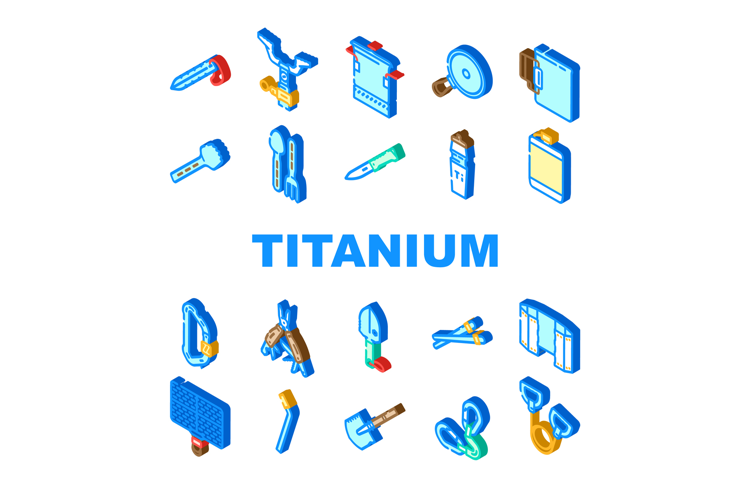 titanium accessories jewelry icons set vector. bracelet, ring, necklace, earrings, watch, pendant, band, chain, studs titanium accessories jewelry isometric sign illustrations