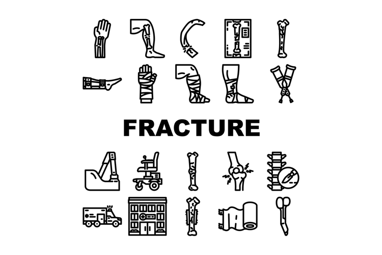fracture injury bone break icons set vector