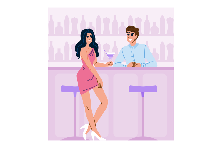 conversation chatting with bartender vector. drinks cocktails, bar mixology, stories nightlife conversation chatting with bartender character. people flat cartoon illustration