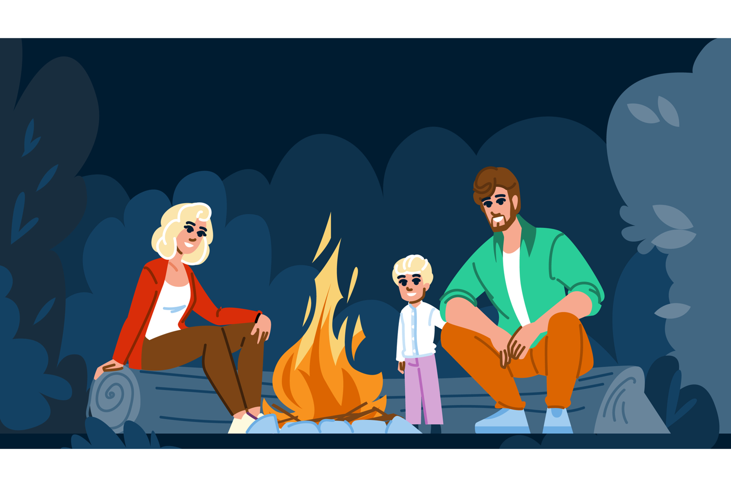 Illustration Character Family Cartoon Flat Vector People Bonfire Fireworks Night