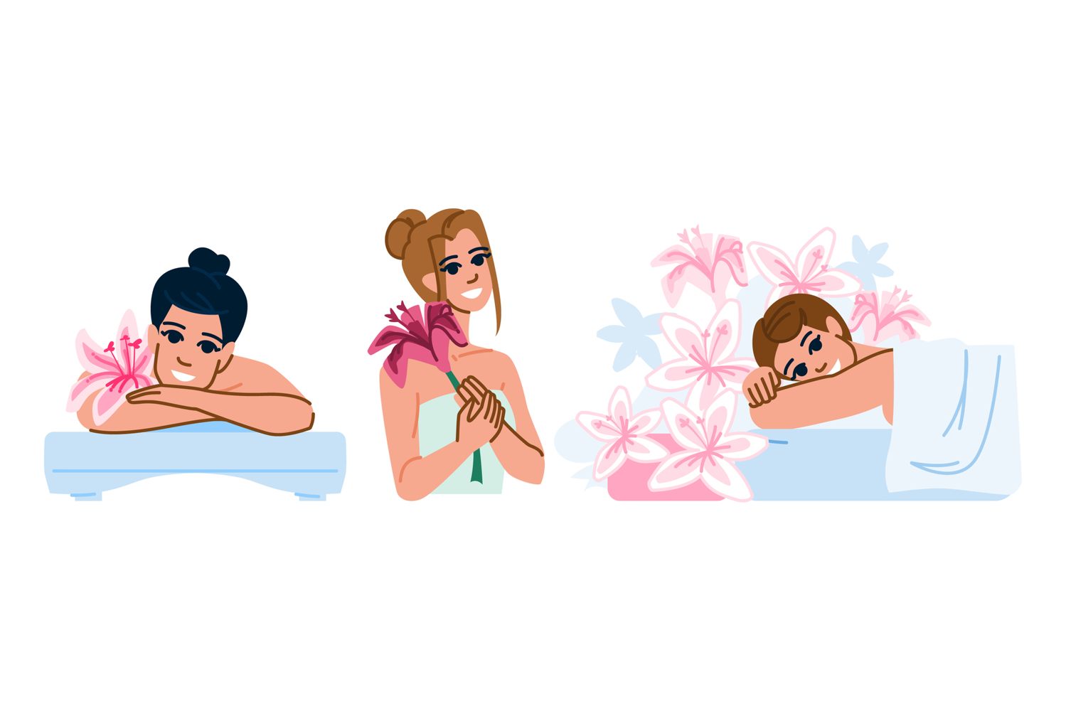 Illustration Character Cartoon Flat Vector Flower Woman People Spa Tranquility