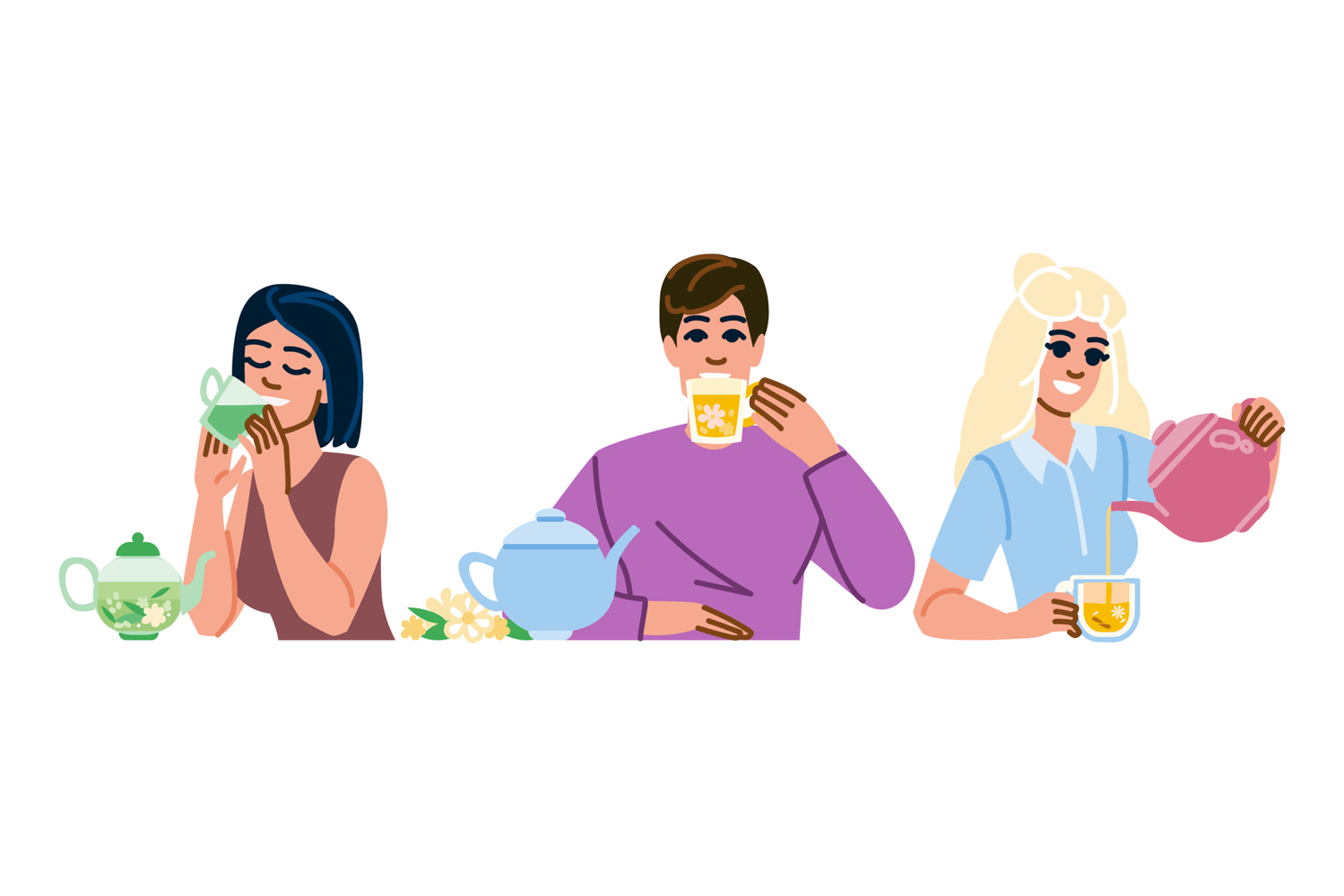 Illustration Character Cartoon Flat Vector Tea People Herbal Blend Infusion