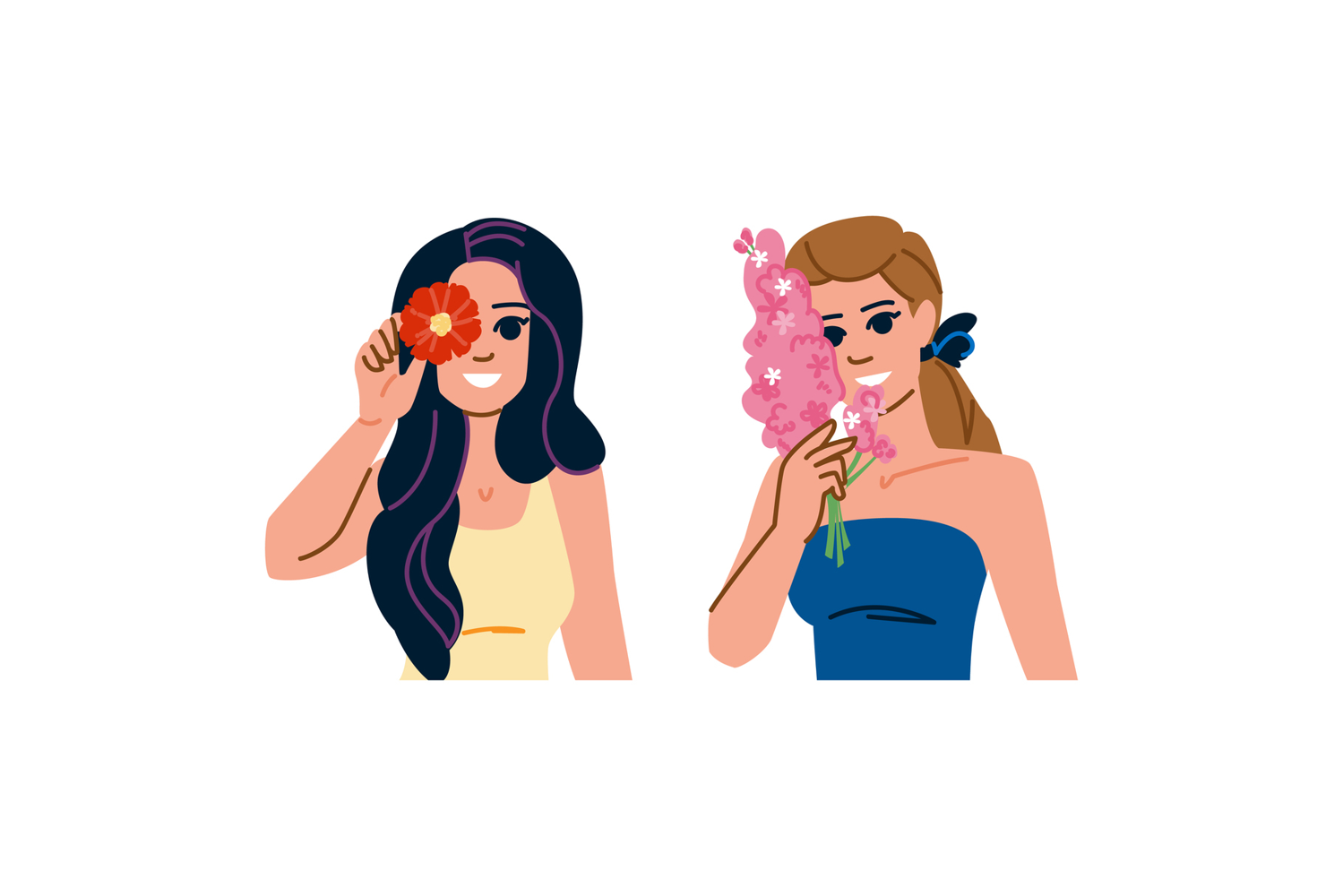 Illustration Character Cartoon Flat Vector Flower Woman People Holding Grace