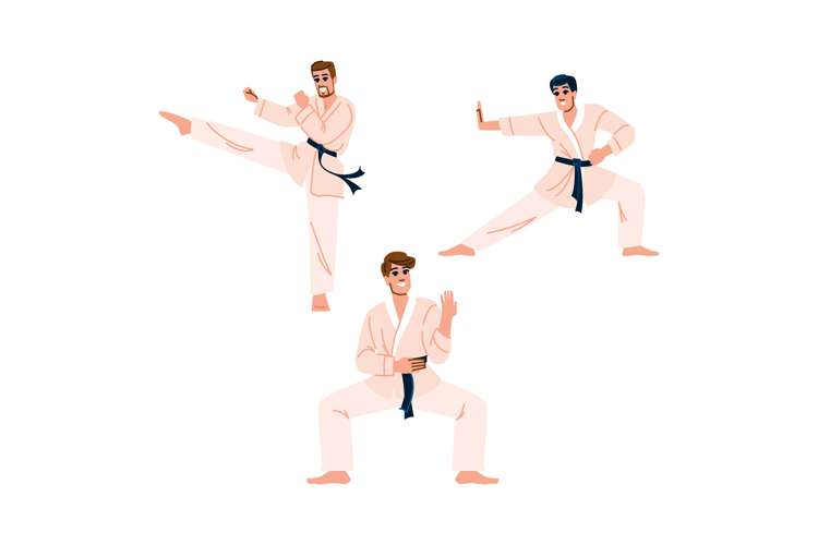 Illustration Character Cartoon Flat Vector Man Sport Training People Karate