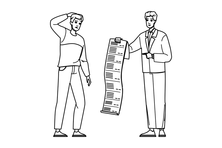 accounts receivable vector. account document, payment logo, coin receive accounts receivable character. people black line pencil drawing illustration