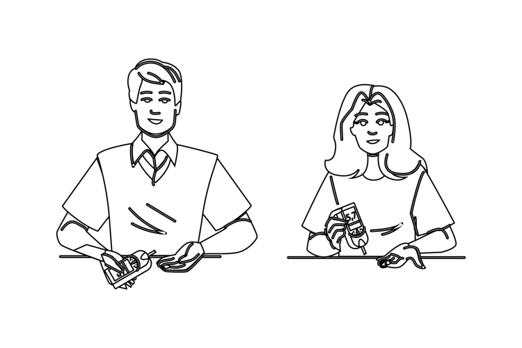 strip blood glucose meter vector. lancet accuracy, reading level, device portable strip blood glucose meter character. people black line pencil drawing illustration