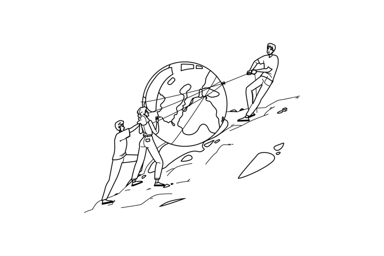 csr corporate social responsibility vector. environment green, responsible business, management strategy csr corporate social responsibility character. people black line pencil drawing illustration